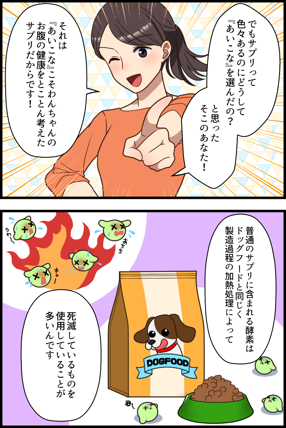 「あいこな」はわんちゃんと相性の良い乳酸菌を30億個も使ってるからしっかり健康維持できるんです♪