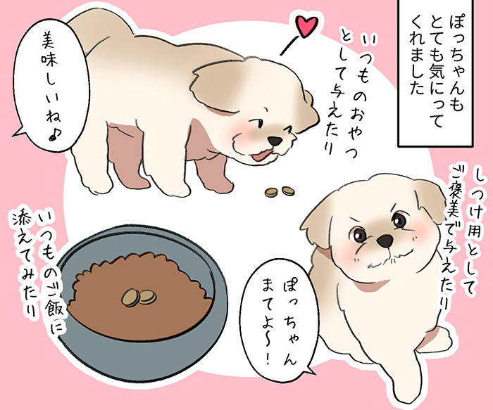 最近、お散歩時間も短くなり座り込むことが多くてこのままにシニアなったら…!と思い始めてみました。おやつ感覚でお手軽に与えられるので重宝してます^^いつまでも元気な我が子でいてほしいです。